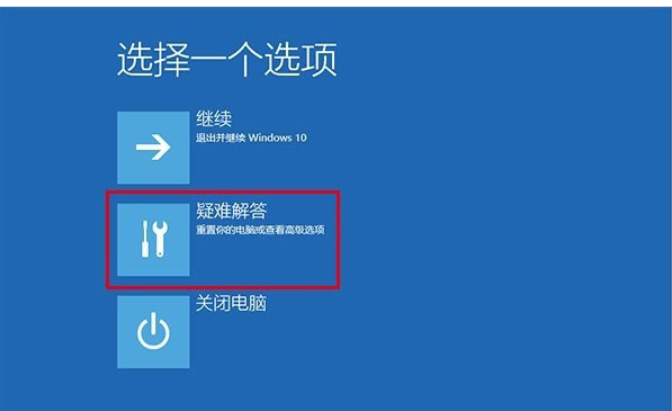 2、 稍等片刻之后,會進入到下面這個界面,這里我們要選擇“疑難解答”。