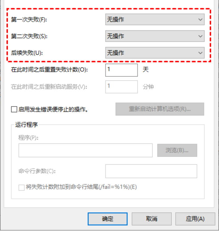 4. 然后我們再單擊“恢復”,可以將圖中框選的部分都設置為“無操作”,然后再單擊“應用”和“確定”。