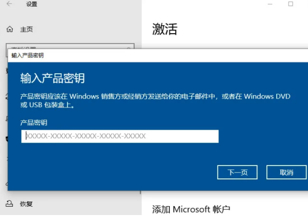 5、彈出輸入產品密鑰對話框的界面,輸入win10密鑰,耐心等待激活。