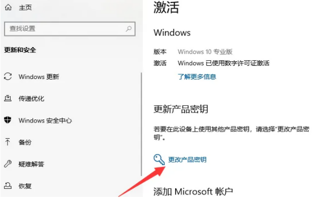 3、點擊更改產品密鑰,輸入win10密鑰即可。