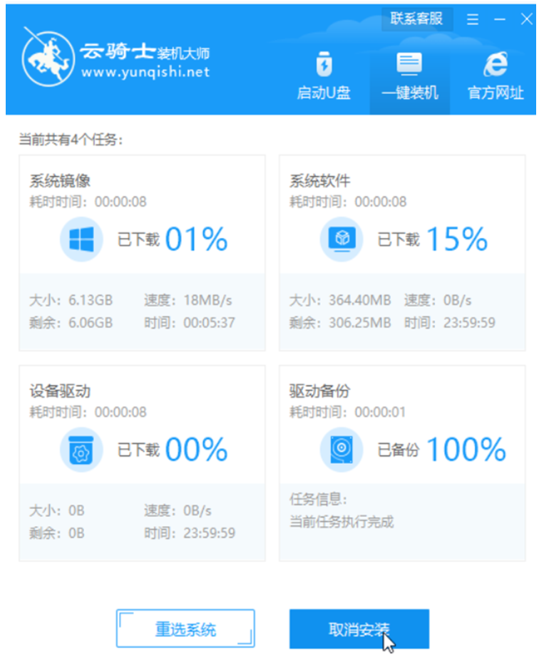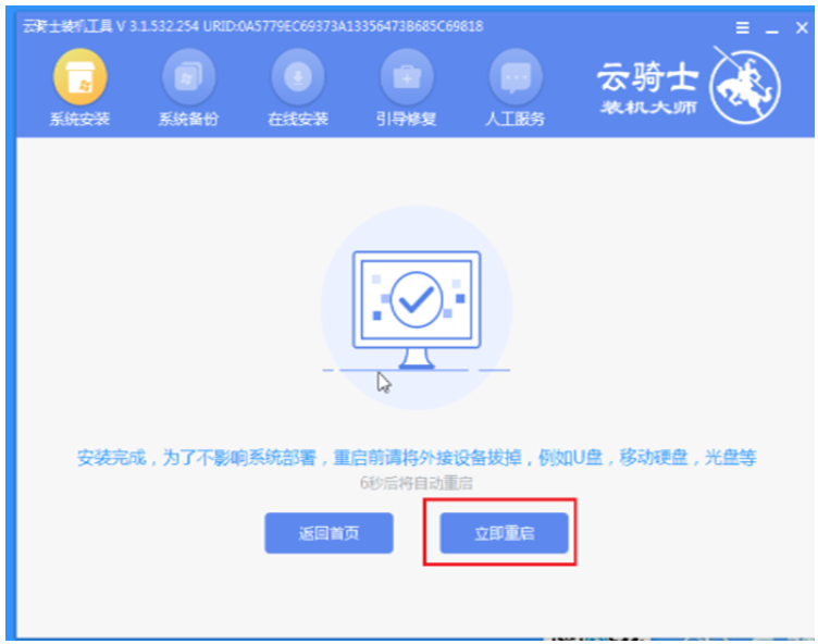 方法一:使用云騎士裝機大師一鍵重裝win10