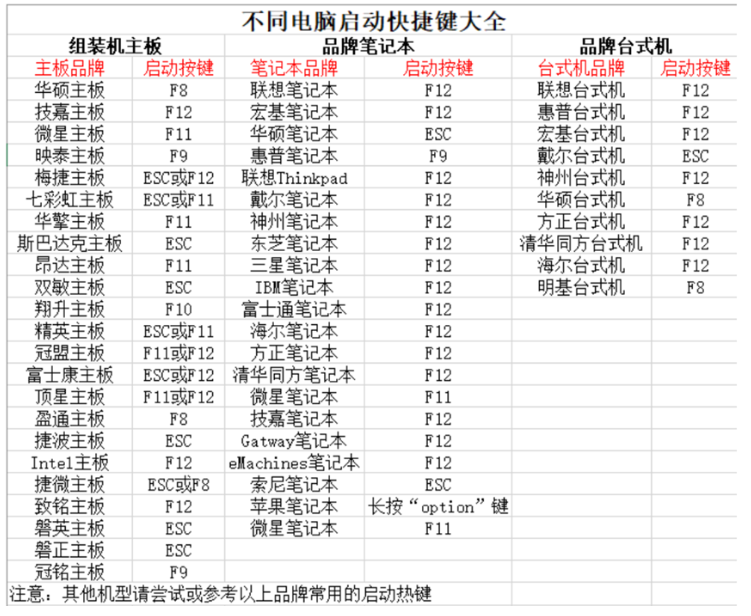 4、查詢u盤啟動快捷鍵,找到對應電腦的啟動快捷鍵并記住它。