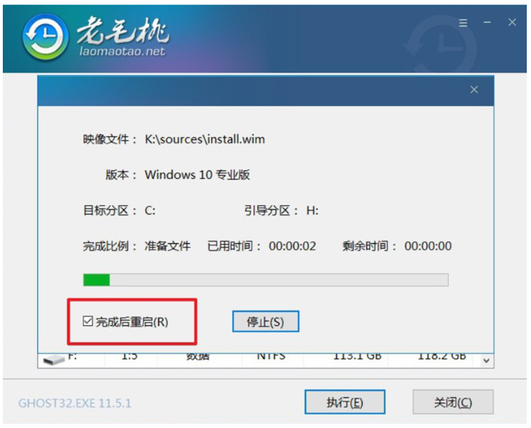 9、勾選重啟,并在電腦初次重啟時,就移除u盤啟動盤。
