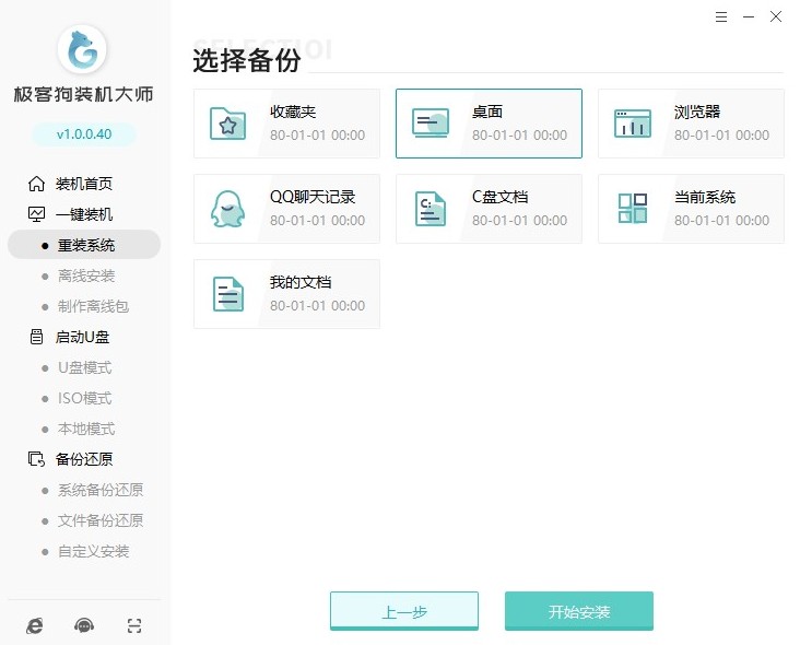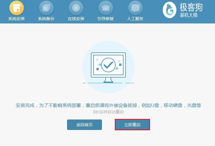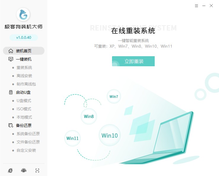1、下載安裝并使用極客狗重裝系統工具