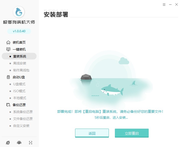 3、系統環境部署完成之后,選擇立即重啟。