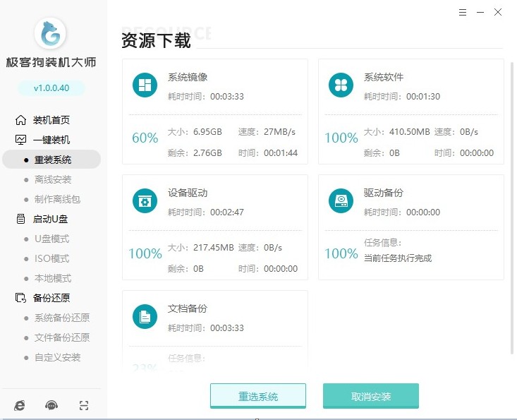 5、資源下載中,自動下載我們選擇的系統文件、系統軟件等等,請耐心等待。