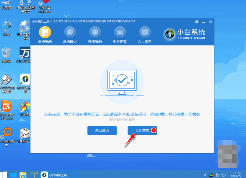當提示安裝完成后,需要先拔掉u盤,然后再重啟電腦。