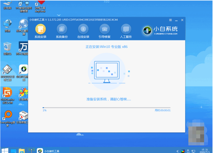 來到pe系統桌面,打開小白裝機工具,選擇windows系統點擊安裝到c盤。
