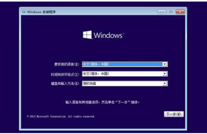 3、從光盤啟動進入win10安裝界面,選擇語言、輸入法,確定。