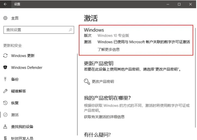 10、我們打開設置查看系統是否激活,如果原來是正版win10,聯網會自動激活的,在沒有激活可在“小白系統官網”查找激活方法步驟。