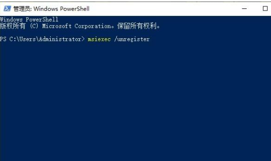 2. 在命令行提示符下,我們輸入msiexec /unregister,再輸入msiexec /regserver。請大家耐心等待修復完成之后,再次更新重裝win10系統即可。