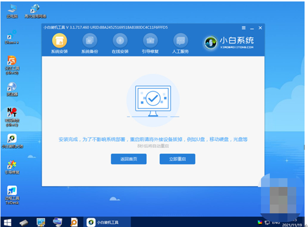 4、安裝完成,退出小白軟件,手動正常重啟電腦后,選擇xiaobaiPE進入。