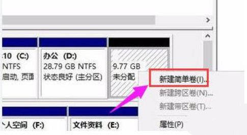 6、壓縮完成后會看到一個未分配的分區,右擊選擇“新建簡單卷”。