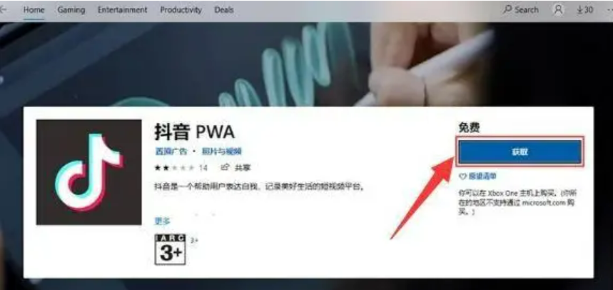 3、我們在對應的安卓的應用程序詳情頁面,點擊“獲取”這個選項。