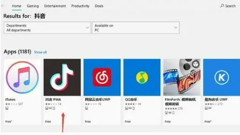2、可以看到從搜索結果中找到“抖音”并能夠點擊打開進行操作。