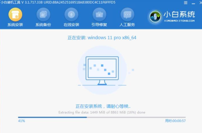 8、此時win11進入安裝程序,等待安裝完成之后,電腦會自動重啟操作。直至進入win11系統桌面。