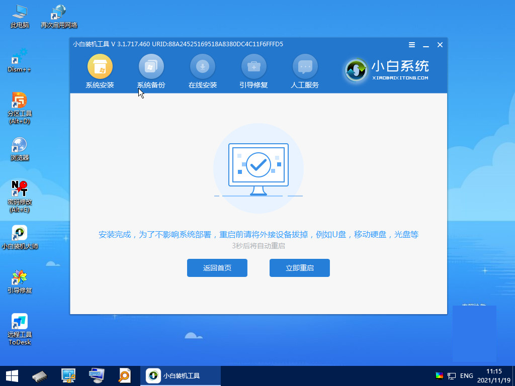 4、當鏡像安裝完成后我們點擊立即重啟即可。
