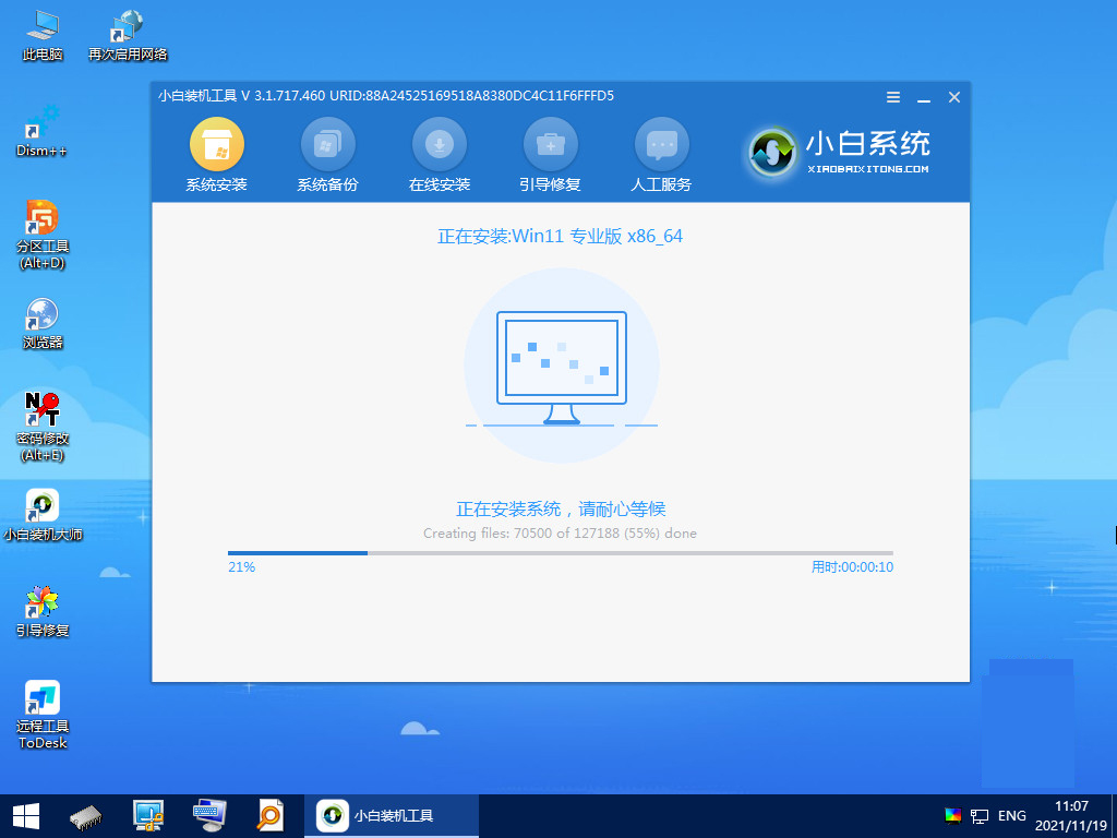 7、開機后,小白軟件將自動執行win11正式版的安裝。
