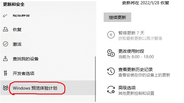 3. 在左邊欄頁面的最下邊選擇“windows預覽體驗計劃”選項。