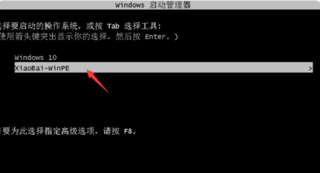 5、進入到啟動項頁面,選擇xiaobaiPE進入。