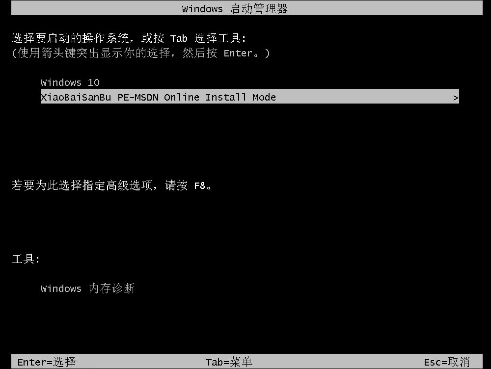 4.重啟時會進入到啟動引導的頁面,我們通過第二個選項進入pe。