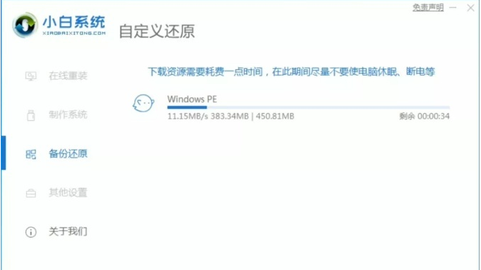 2.下載一個小白一鍵裝機工具,打開之后點擊備份還原中的自定義還原功能進行我們的系統鏡像搜索。