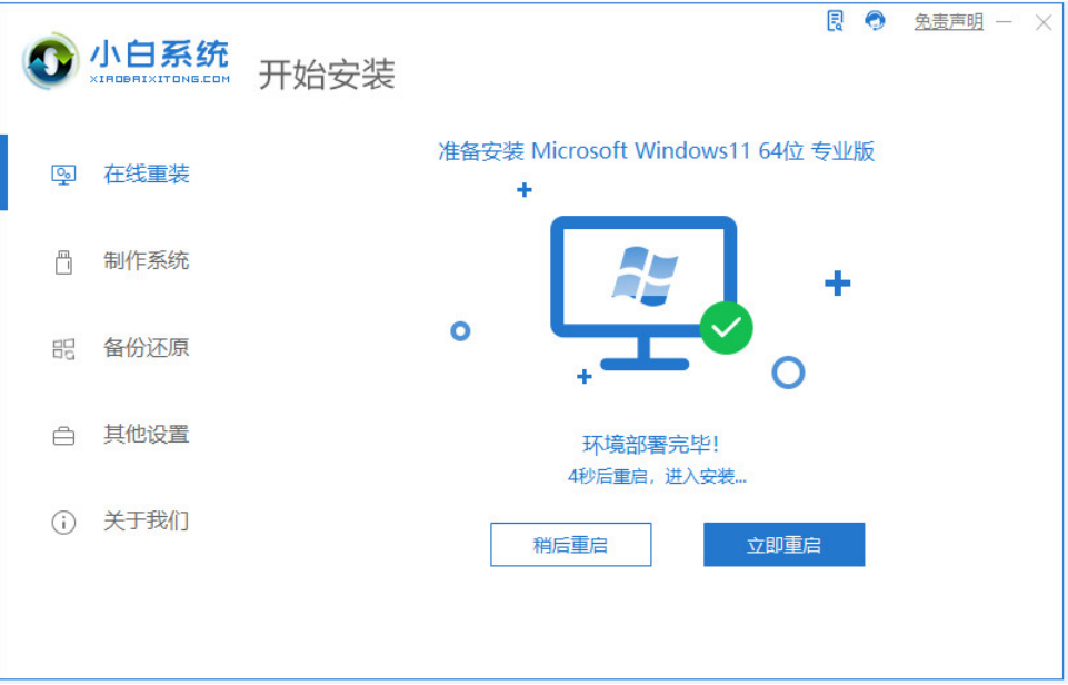 4、等待系統下載完成,部署環境,我們重啟電腦進入安裝windows11系統的界面。