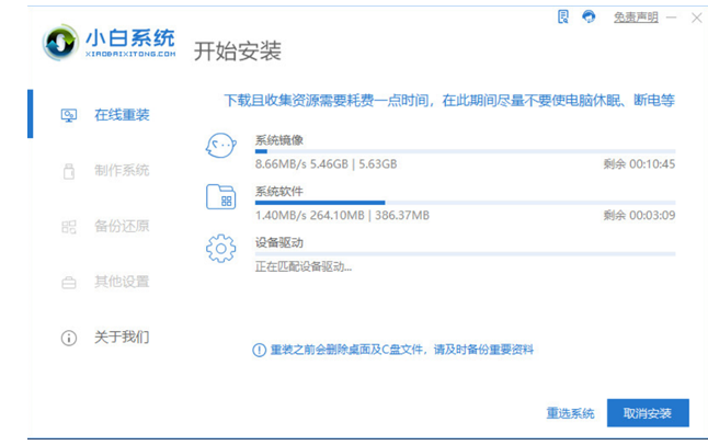 1、上網搜索并下載小白一鍵重裝系統,雙擊打開,選擇在線重裝系統。