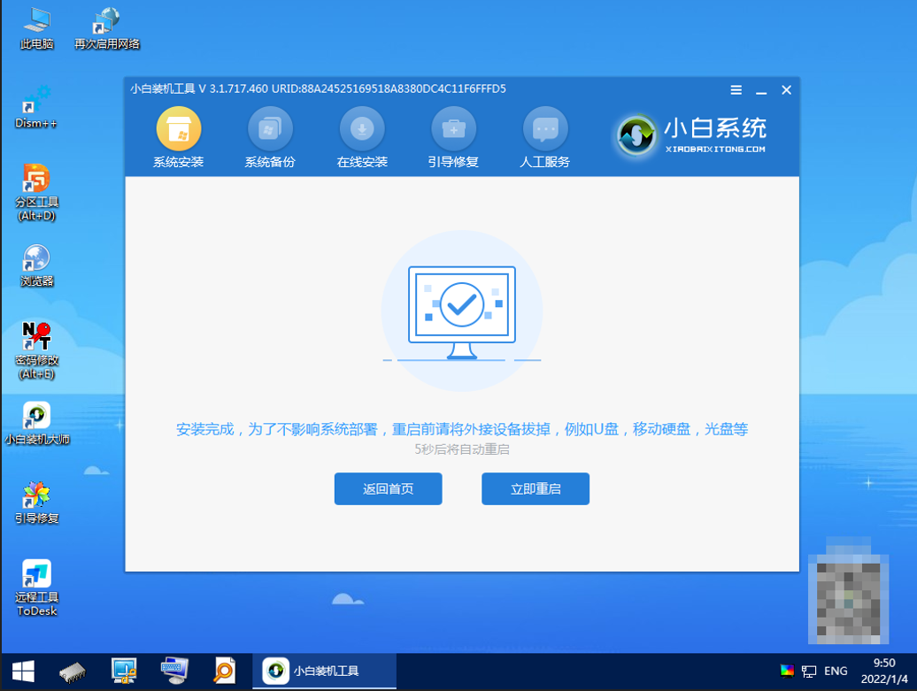 5、在 PE 系統中,裝機工具會自動幫我們繼續重裝系統,完成后再次重啟電腦。
