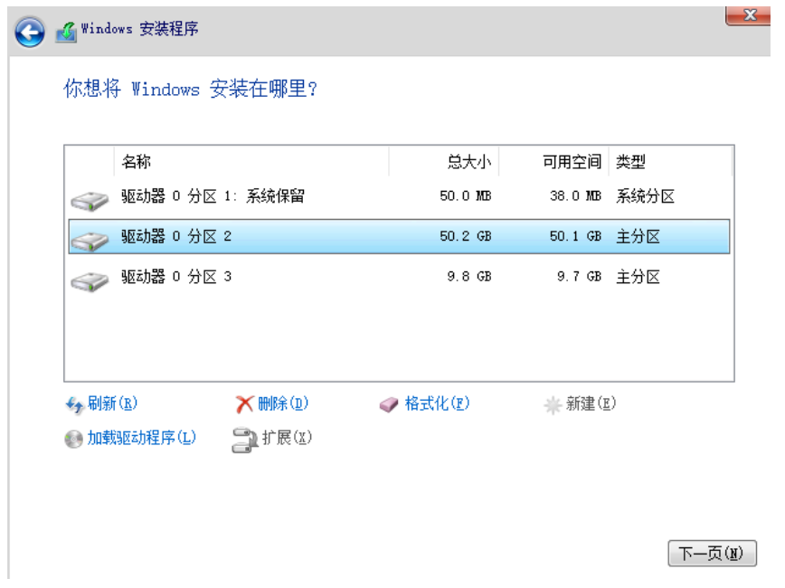2、接著來到分區界面,選擇我們要安裝的地方。