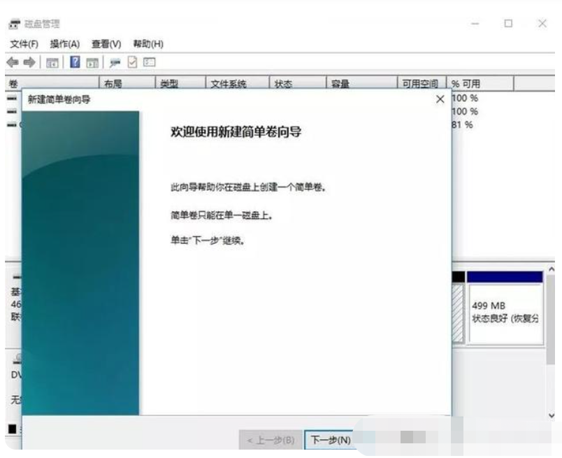4、然后右鍵單擊空間,選擇“新簡單卷”,然后單擊“下一步”。
