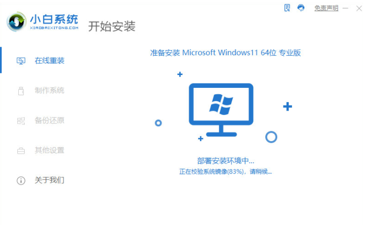 4、win 11下載完成后,小白軟件將會進入環境部署狀態。