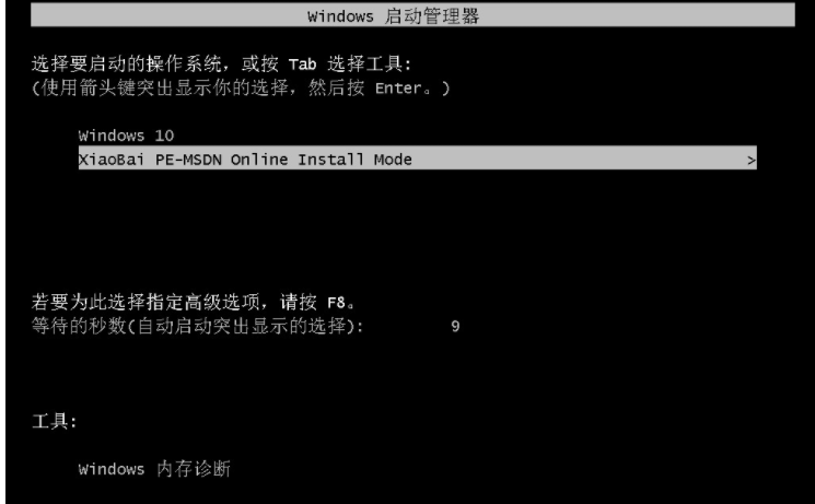 4、重啟后選擇【XiaoBai PE-MSDN Online Install Mode】進入PE系統。