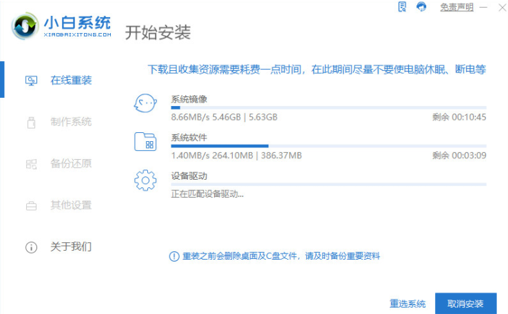 7、在PE環境中,小白軟件會自動進行win 11的安裝,耐心等待完成。