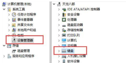 2、打開計算機管理后,在左側選擇“設備管理器”,然后就能找到右側的“鍵盤”。