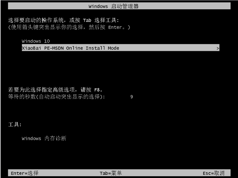 4、進入到開機選項界面,我們選擇第二項xiaobai-pe系統進入。