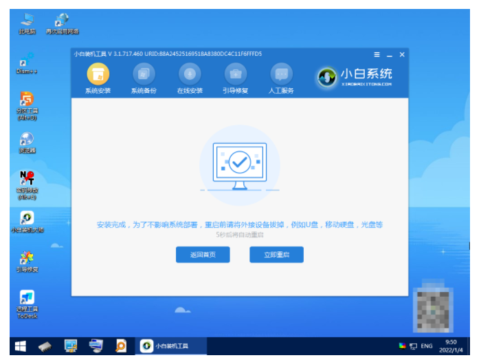 6、系統安裝完成后,點擊重啟即可。