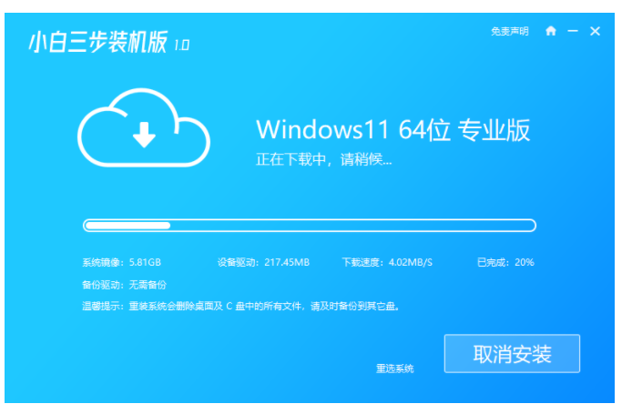 1、運行小白三步裝機軟件,選擇win11系統后點擊重裝。