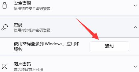 4、展開“密碼”,然后點擊下方的添加。