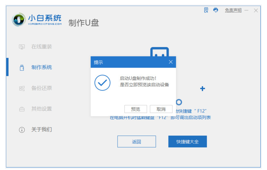 3、u盤啟動盤制作完成后,先查看啟動快捷鍵,返回重啟。