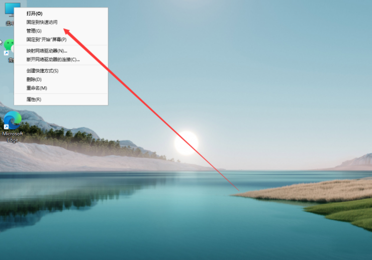 1、首先選中win11桌面的此電腦圖標,鼠標右鍵選擇管理打開。