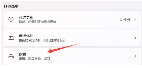 4. 然后在“高級選項”中找到“恢復”,選擇其中的“返回”。