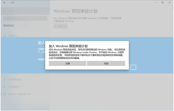 1、首先打開筆記本電腦win10系統的開始菜單,依次打開“設置”-“更新和安全”,點擊左側的 “Windows 預覽體驗計劃”。