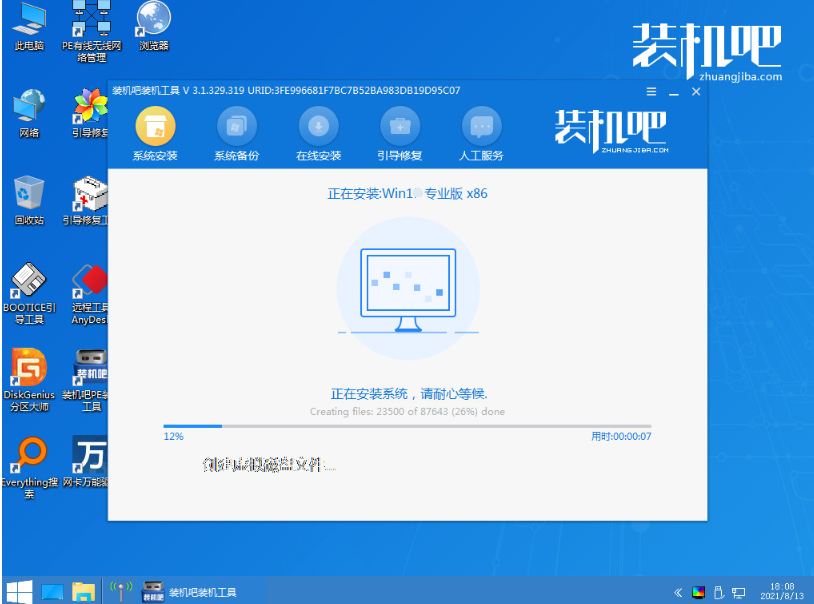 5、在pe系統內,裝機吧裝機工具自動安裝win11系統,完成后自動重啟。