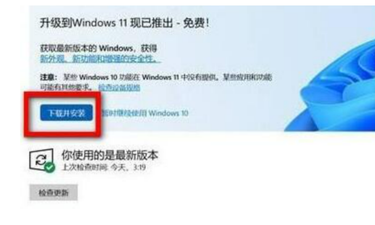 4、滿足win11的要求點擊“下載并安裝”就可以升級了。