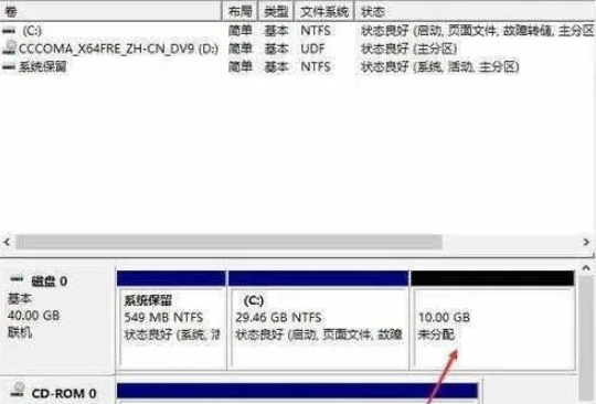 4、完成后,界面會出現一個黑色框10.00G未分配的磁盤