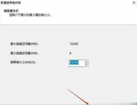 3、開始壓縮:輸入您需要新建磁盤的大小。