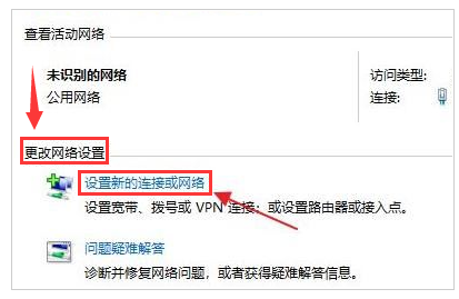 3.在更改網絡設置欄目中點擊設置新的連接或網絡按鈕。