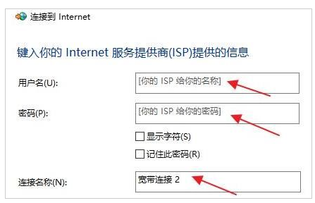5.相應輸入新網絡的用戶名以及密碼信息。