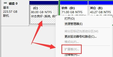 5、刪除后,右鍵點擊c盤,選擇擴展卷。